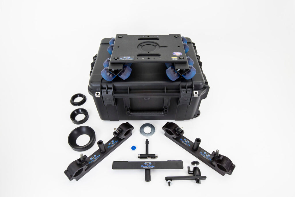 Kit includes Dana Dolly, 2-Universal Track Ends, 75mm, 100mm, 150mm Ball Adapters, Custom SKB Case, Center Support.