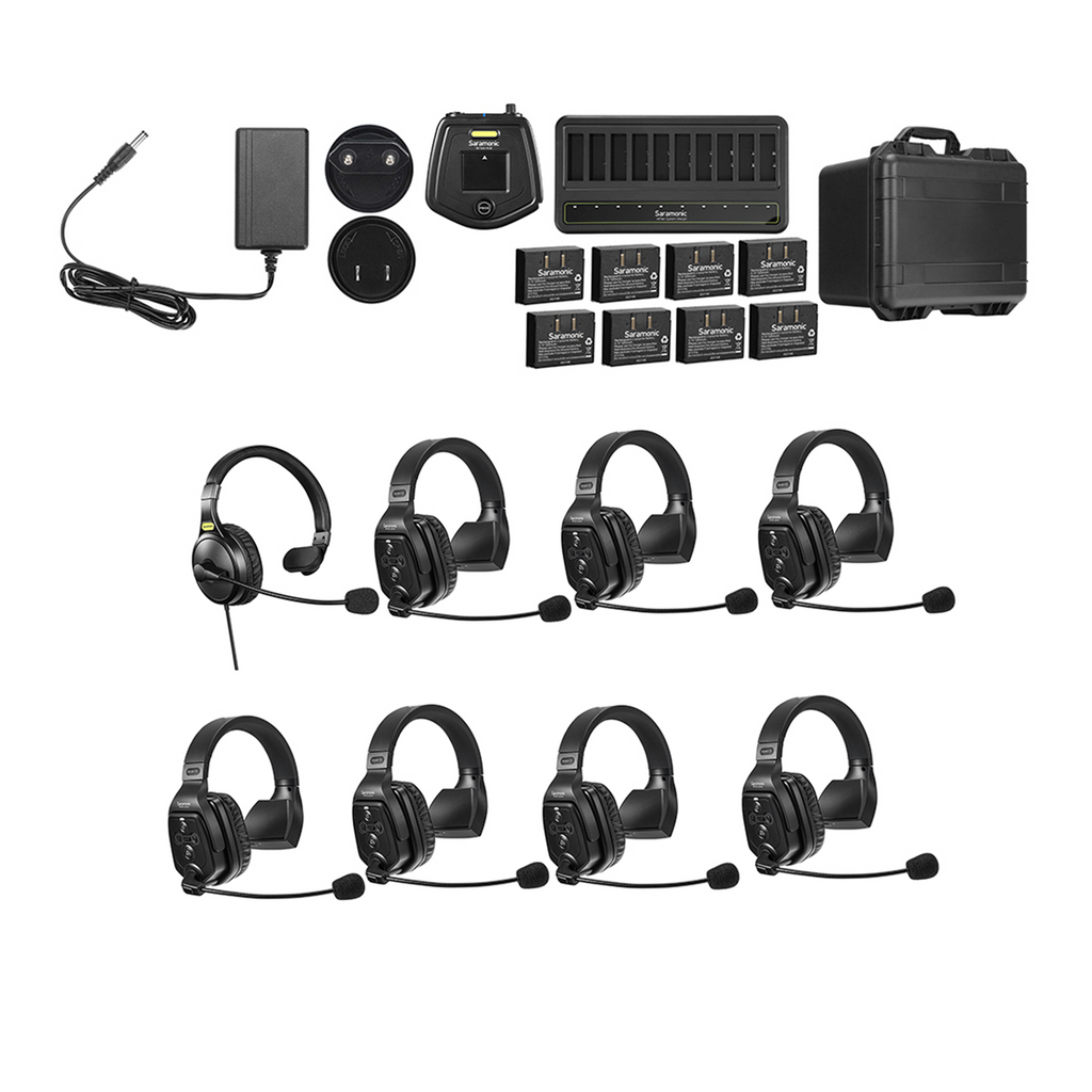 Saramonic WiTalk-WT8S 8-Person Full-Duplex Wireless Intercom Syst w/ 7x Single-Ear Headsets, 1x Backband Headset, Hub, Hard Case, Multibay Charger, 400m Range,+